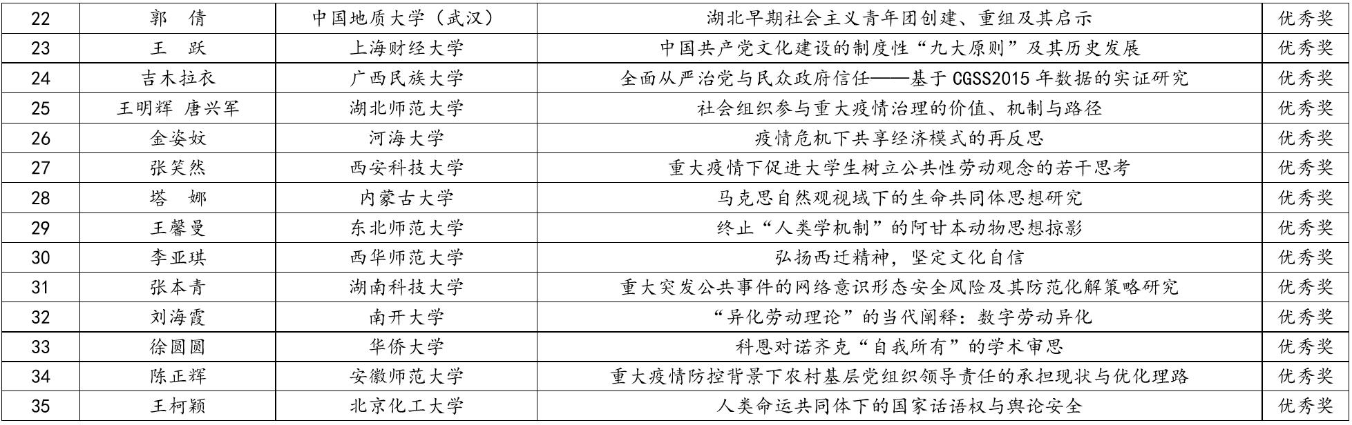 2020年全国研究生学术论坛自通知发布以来,得到了全国各高校研究生的热烈响应,累计收到校外投稿477篇,经主办方组织专家认真评审,现选出获奖论文80篇,其中一等奖10篇,二等奖15篇,三等奖20篇,优秀奖35篇。(附件1)