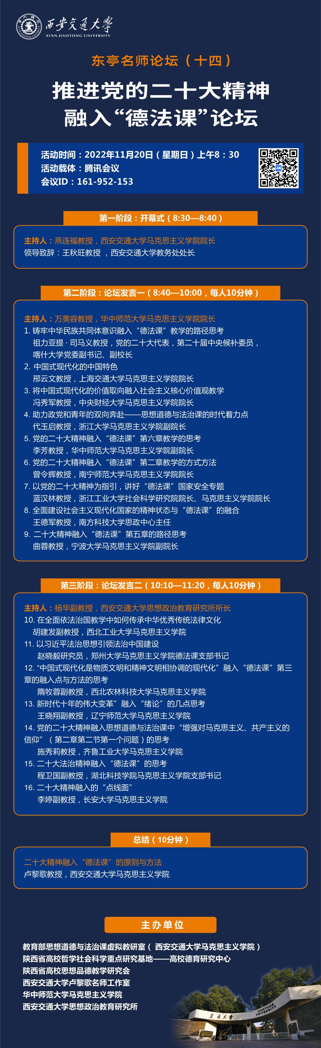【11月20日会议预告】分论坛(一):推进党的二十大精神融入“德法课”论坛