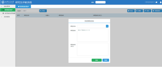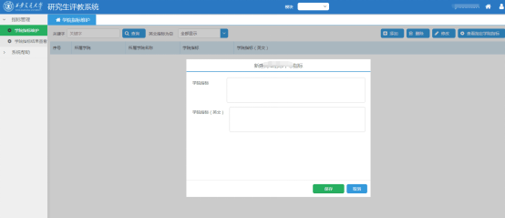研究生评教指标体系分为学校指标、学院指标和教师指标三个层次。学校指标由研究生院负责维护,评价结果作为研究生课程绩效考核的参考依据。