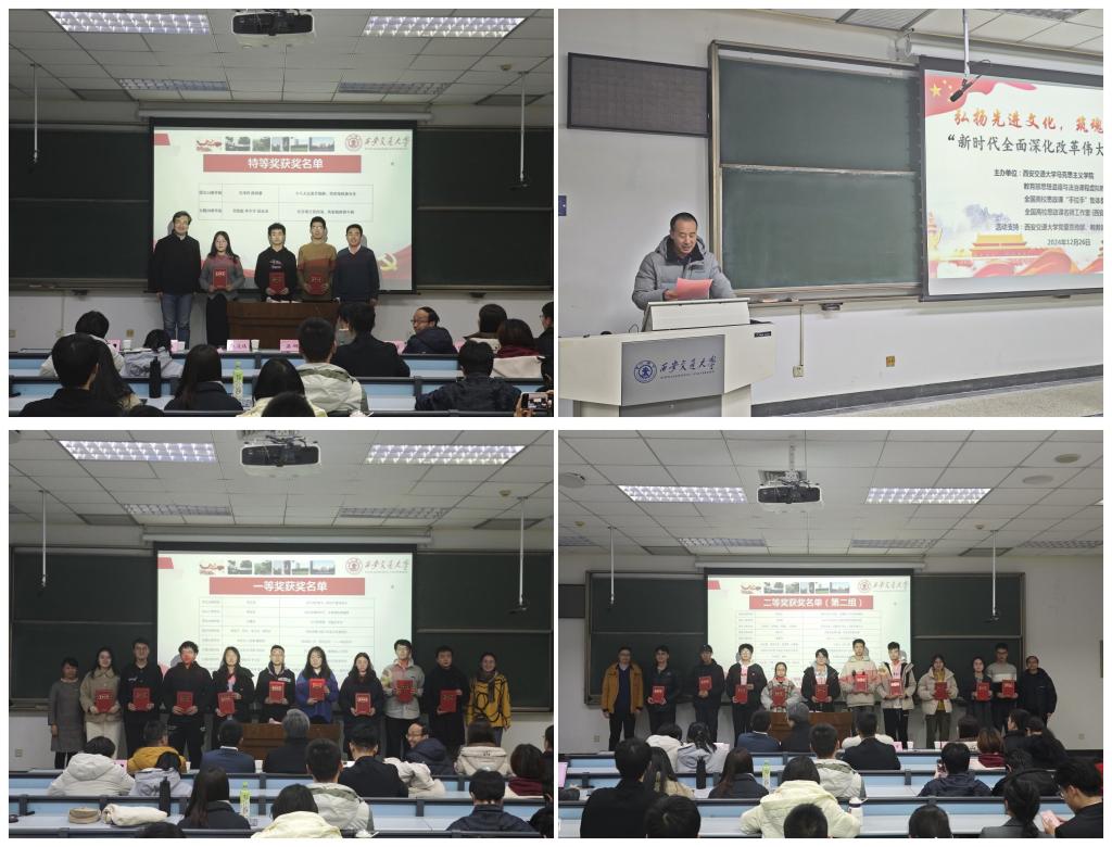 参会领导和教师代表为获奖同学颁奖,现场气氛热烈,展现了学校、学院和老师们对同学们认真学习思政课和通过所学所思进行精彩展示的高度肯定,并激励着更多交大学子通过学习思政课提升自我、追求卓越,在实现民族复兴的伟大实践中实现自我价值。