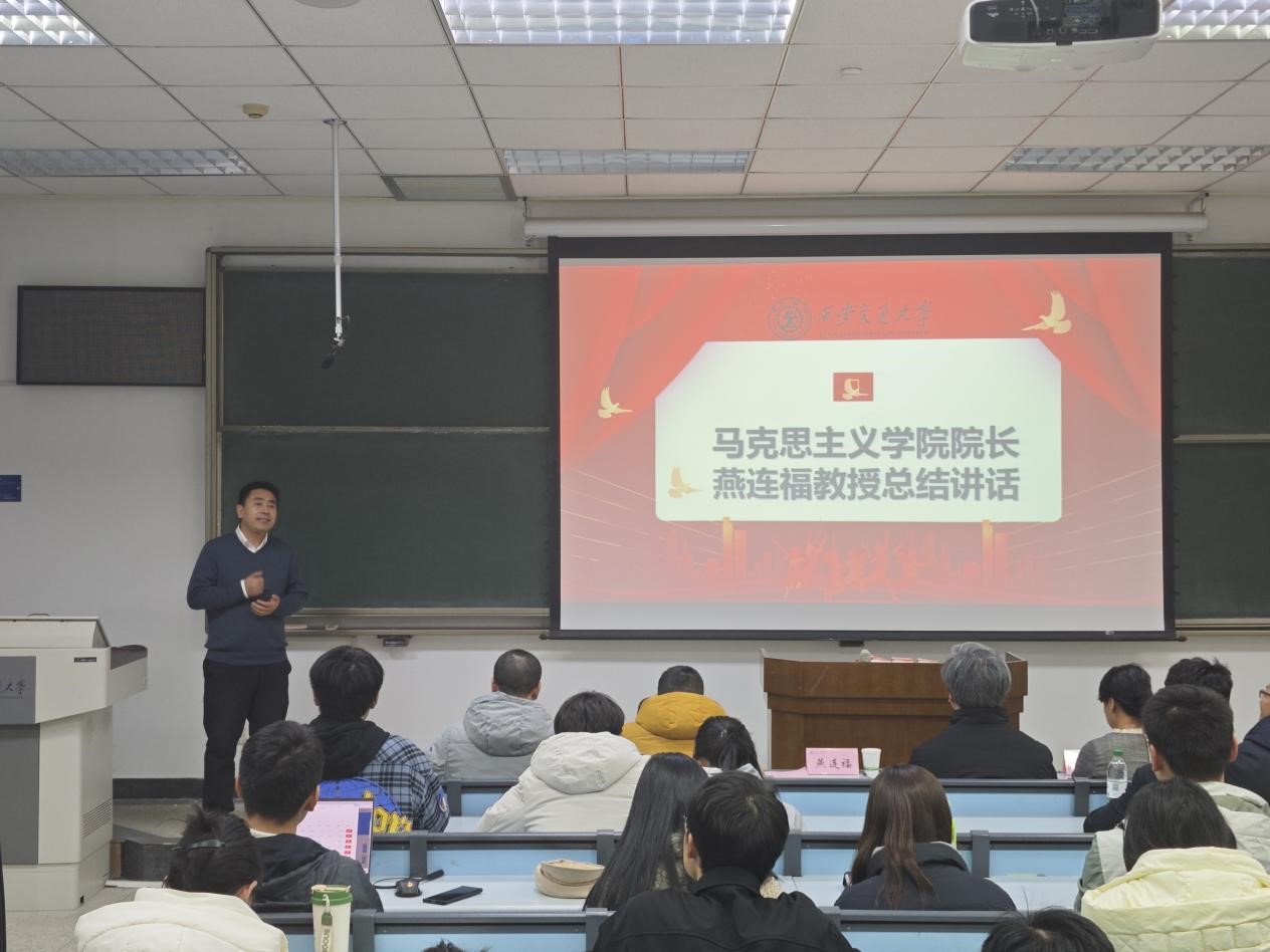 燕连福对本次活动进行了总结,他指出,每一次活动都充满惊喜与创新,学生们通过生动讲述,巧妙融合新时代成就与传统文化、革命文化、先进文化,使思政课更具针对性和吸引力,“我来讲”系列活动不仅展示了交大学子的才华与成长,而且激发了学子深入学习思政课的主动性和积极性。他强调,要将活动优秀成果制作成视频,广泛传播正能量、宣传新时代的伟大成就,持续巩固思想政治理论课教学成效。他寄语同学们,要继续努力,将所学所悟运用到实践中,为中华民族的伟大复兴贡献自己的力量。