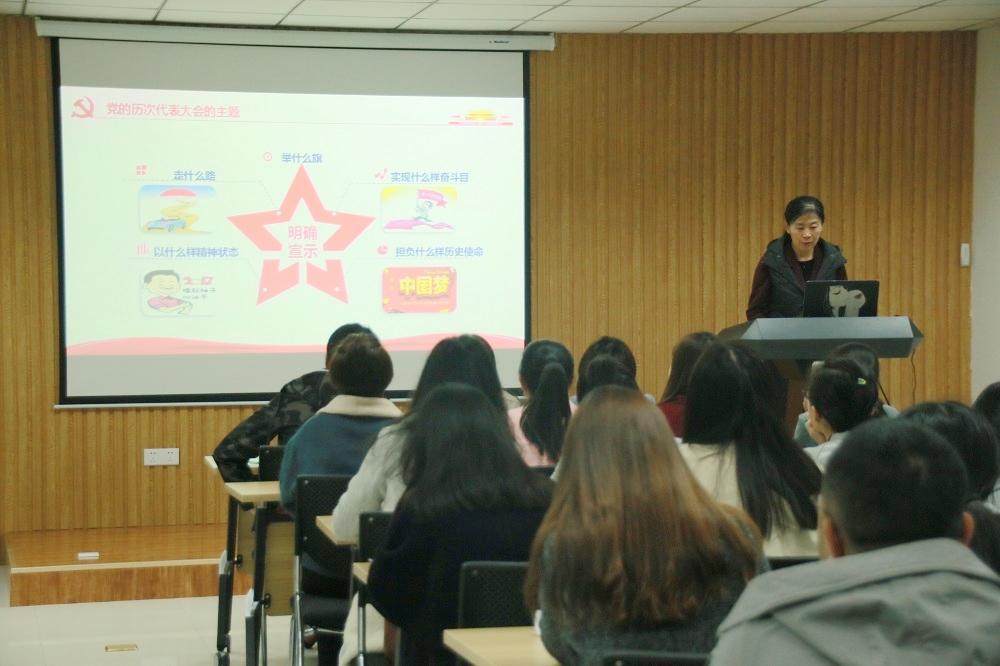 首先,苏书记系统回顾了改革开放以来党的历次全国代表大会召开的背景和主题,并指出,历次党代会都是对“举什么旗、走什么路、以什么样的精神状态、实现什么样的奋斗目标、担负什么样的历史使命”的明确宣示。接着,她对党的十八届一中全会至七中全会进行了重点梳理,总结了“四个全面”提出的历史进程,并在此基础上引申到自己对十九大报告的学习体会。