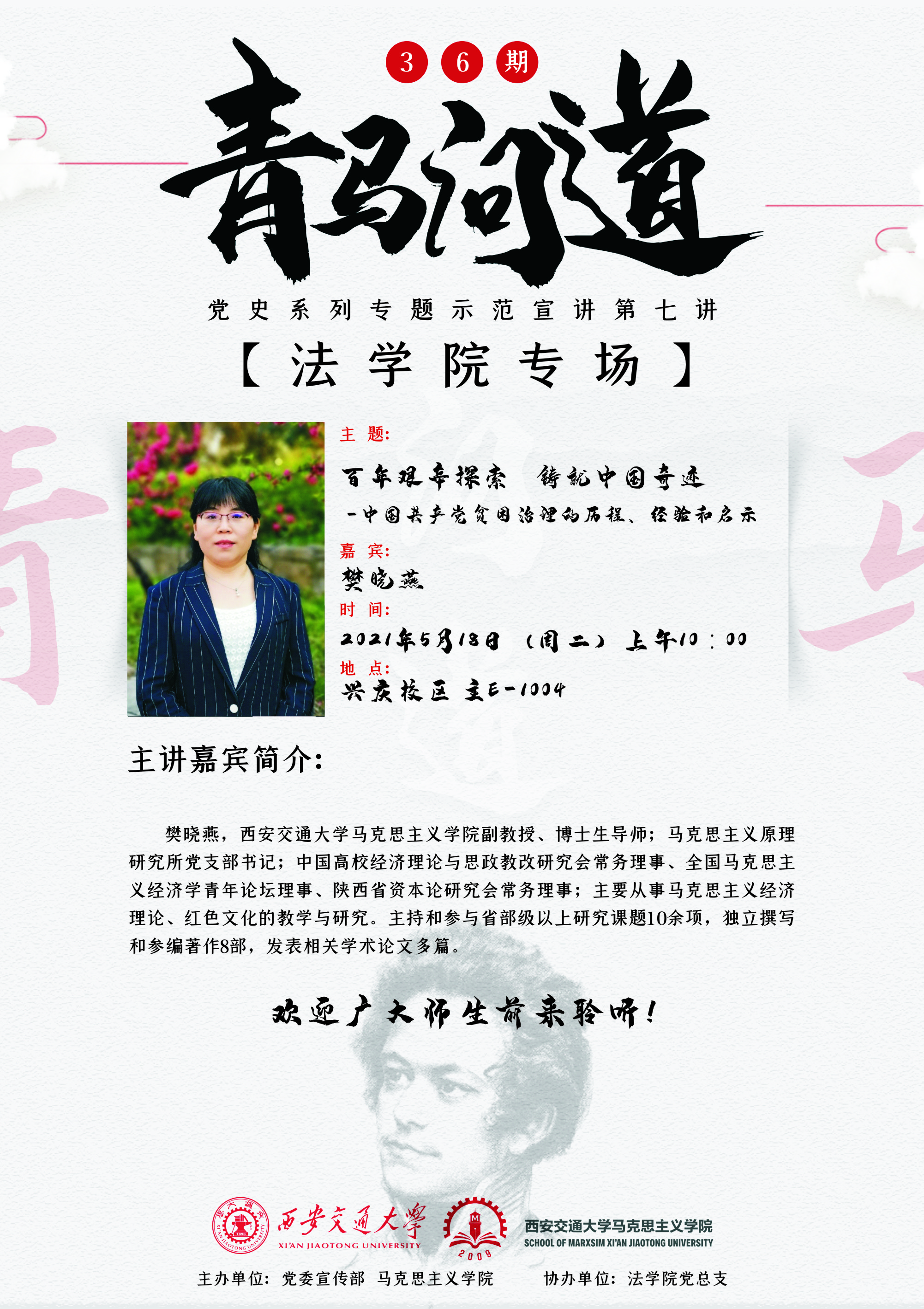 【讲座预告】青马问道36期----党史系列专题示范宣讲第七讲【法学院专场】