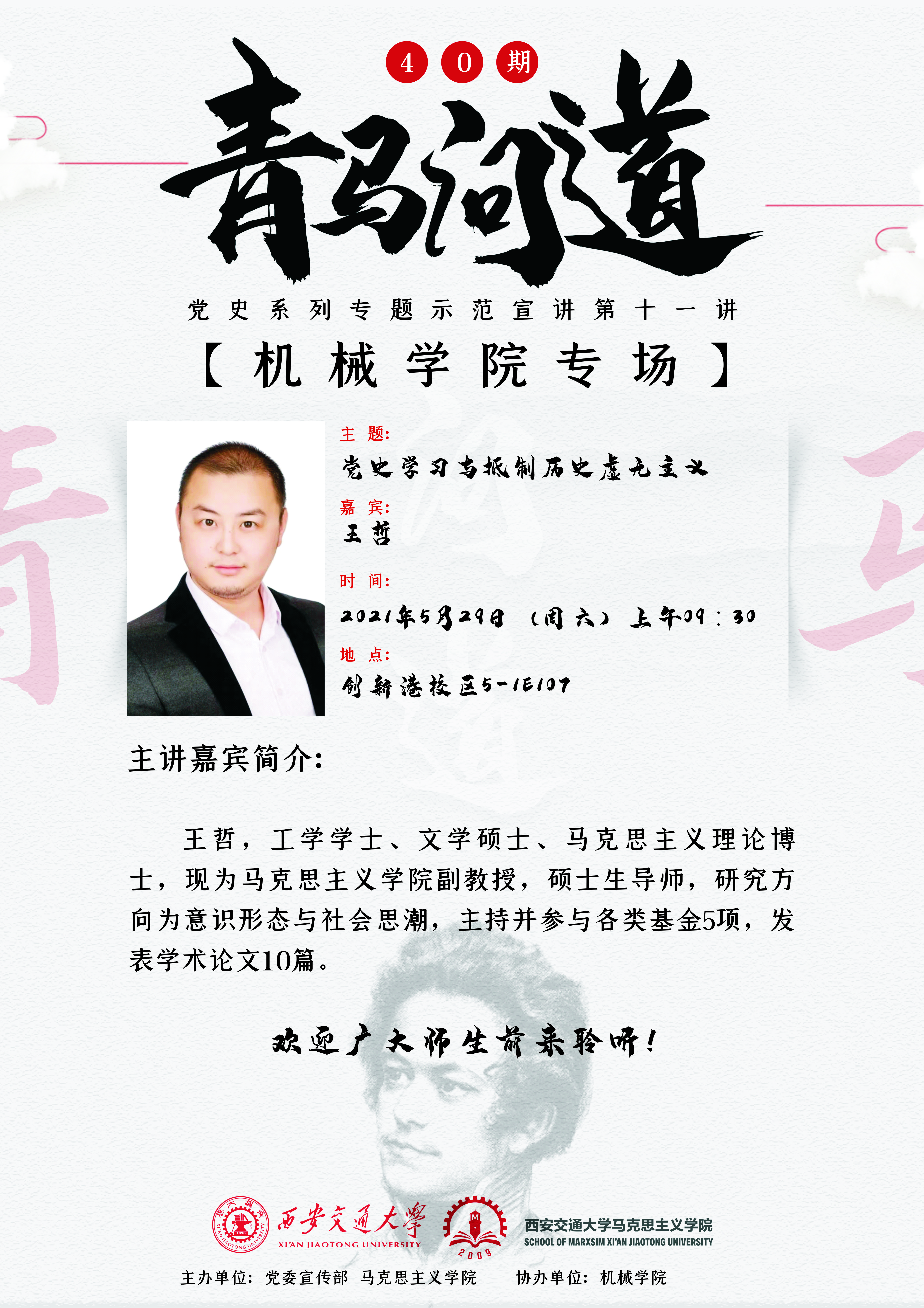 【讲座预告】青马问道40期----党史系列专题示范宣讲第十一讲【机械学院专场】