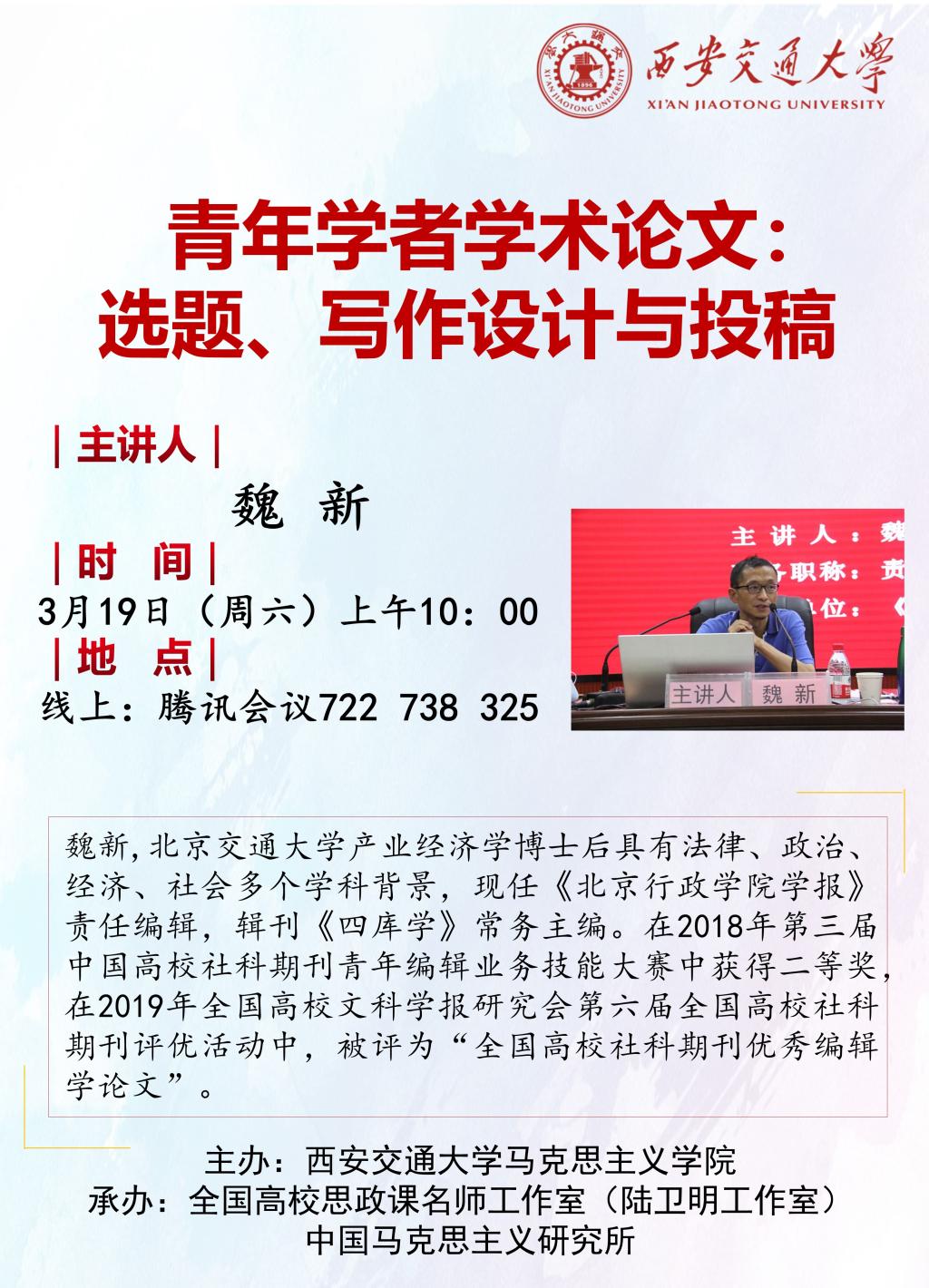 【陆卫明名师工作室】魏新:青年学者学术论文选题、写作设计与投稿