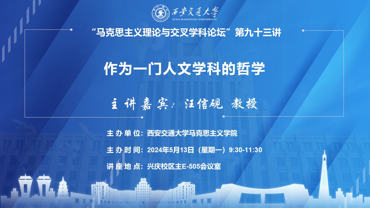 讲座人 汪信砚 时间 2024年5月13日(星期一)9:30-11:30