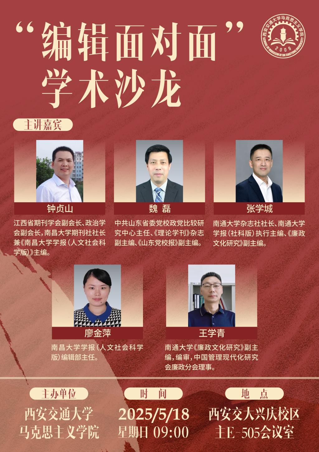 讲座人 钟贞山 、魏磊 、张学城 、廖金萍 、王学青 时间 2025年5月18日(星期日)上午9:00