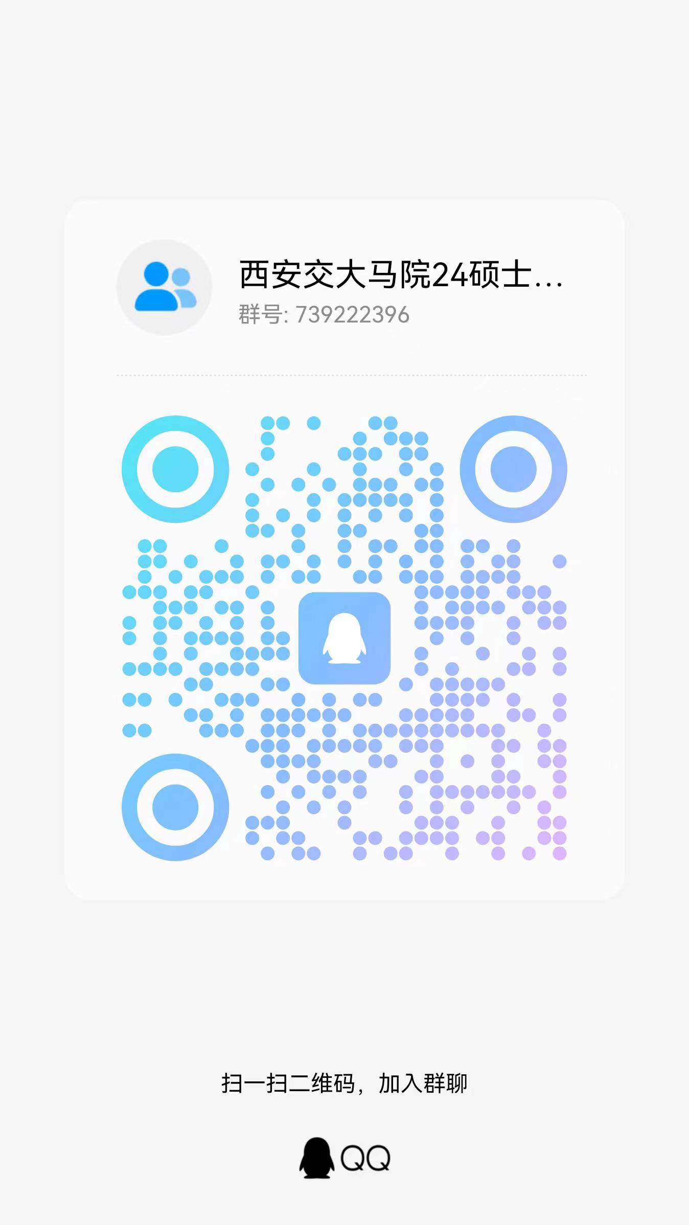 4.进入复试的考生,请搜索QQ群号:739222396或扫描二维码,尽快加入我院2024年硕士生复试群,并及时关注我校研招网及学院官网发布的有关通知。