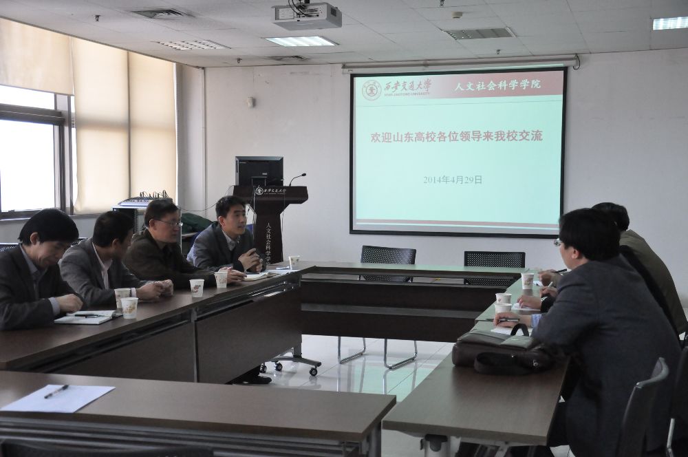 近日,山东省高教工委一行来陕西高校调研。4月29日上午,在主楼E703与我校人文学院部分领导和教师代表就高校思想政治教育与教学工作进行了交流。山 东省高校德育研究中心主任姚昌,济南大学党委宣传部部长丛晓峰,山东师范大学绅士漫画