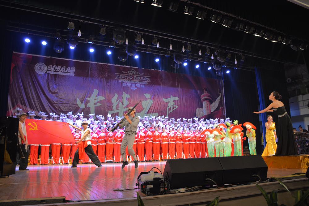 百年学府,传承筚路蓝缕,经历风雨沧桑,联队首先深情的演唱了校歌《为世界之光》,表达了对交大西迁精神的崇敬和饮水思源的作风。紧接着,联队以深刻反映了中央红军和毛主席到达陕北这一伟大革命转折时期的民歌——《山丹丹花开红艳艳》为自选曲目,并融入了摇滚的风格,在表现形式和歌唱风格上作了很大的创新,作为第七个表演的节目,当嘹亮的唢呐声响起便瞬间点燃了全场观众的激情和评委的热烈称赞,现场氛围进一步推向高潮。