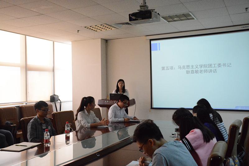 最后,学院团工委书记耿嘉敏老师对本次会议作了最后的总结陈词,对组织本次会议的所有组织者表示感谢,对研究生会的工作成绩表示肯定,对新一届研会工作表示大力支持,同时也对新一届研会成员寄予厚望。在座的研会成员个个精神饱满,表现了对以后开展研会工作的信心与决心。