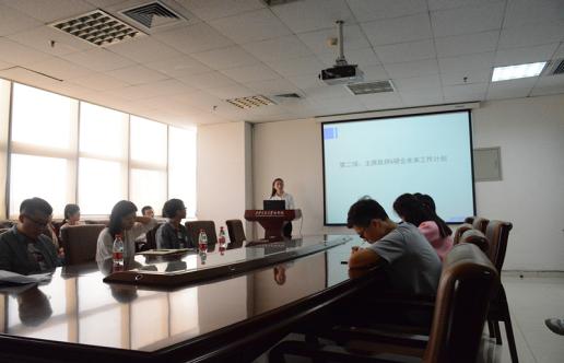 随后,研会副主席及其分管部门各部长对自身所负责的各项工作做了简单介绍。本届研会由主席团、宣传部、文体部、实践部以及办公室构成:主席团对院团工委领导下的研会整体工作负全面责任,其由一位主席,三位副主席构成;办公室是院研会内部的协调部门,负责研会文件的起草、信息汇总等事务性工作,分管财务、档案整理,负有协调和监督各部门的工作职责,由张茜副主席负责,邓江楠担任部长;宣传部是“学生喉舌,活动导向,舆论标兵,宣传榜样”,主要承担本院重大新闻动态以及研会工作的新闻宣传工作,负责学院网站、研会微信公众号等通讯稿的撰写、宣传报道工作,由武星星副主席负责并兼任部长;文体部是研会组织和管理学生文艺活动、体育运动方面的职能部门,由崔殿宁副主席负责,乔邦曦担任部长一职;实践部是研会的一个常设部门,担负研会内部的素质拓展活动,面向全院同学提供较为全面的职业发展规划、职场技能提高等相关活动,以及与社会商业部门做好沟通联系工作,由高香香担任部长一职。