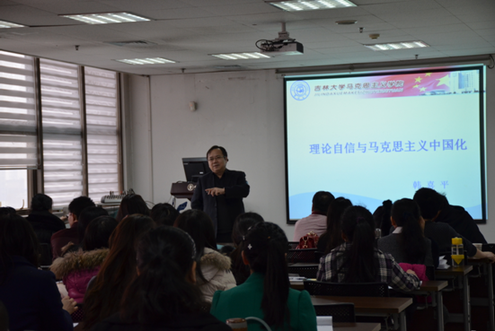 当日下午,韩喜平教授还为我院师生作了题为“理论自信与马克思主义中国化”的报告,他从“理论自信的来源与依据、理论自信面临的新挑战、马克思主义理论工作者的责任担当“三个方面进行了深入浅出的讲解,并为我们解答了关于社会主义本质任务、马克思主义理论与中国传统文化融合、当下思想政治理论课的时效性等问题,获得了热烈反响