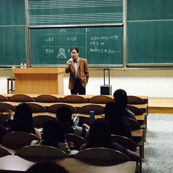 同学们带着饱满的热情开始了排练。首先是音阶的练习,教练老师向大家讲解了发声的原理,引导他们运用腹式呼吸法进行练习。钢琴伴奏从C大调音阶开始弹奏和弦,同学们和着音阶发声,随着音阶的提高,大家的音域也渐渐提升上来。在音阶开嗓之后,就开始了正式校歌的训练。“美哉吾校,真理之花”,优美的旋律萦绕在阶梯教室。尽管同学中有相当一部分本科都不是交大学生,然而在教练的引导下他们都渐渐熟悉了校歌的曲调。排练最后,教练还给同学们示范了自选曲目,在轻松的氛围下,民歌被同学们唱出了活力与新意。