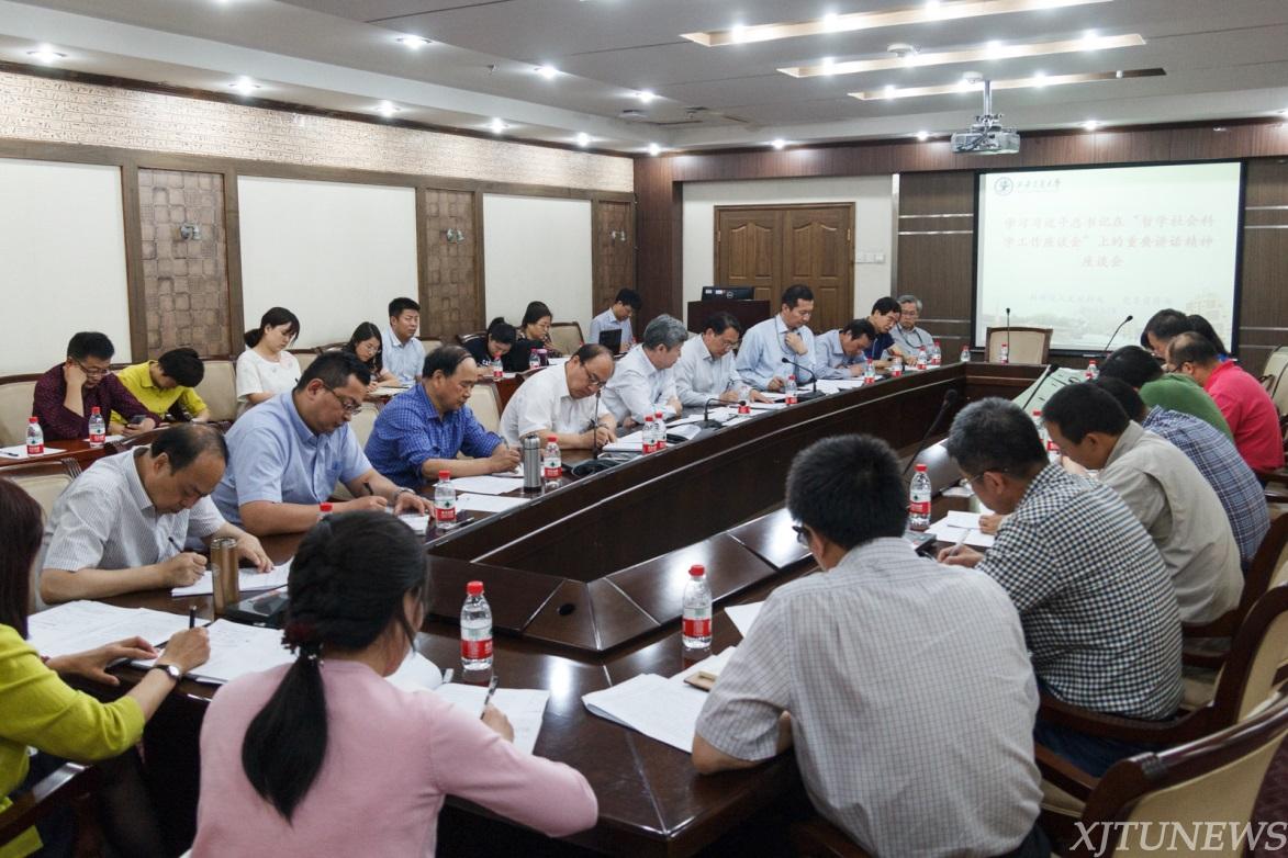 5月18 日,西安交大召开专题学习会,深入研讨习近平总书记关于哲学社会科学工作的讲话精神,畅谈学习体会,为繁荣发展哲学社会科学建言献策。热烈的讨论吸引了中 国社会科学报、西部网、陕西日报、陕西传媒网、西安日报等媒体的关注,纷纷在第一时间对学校热议习总书记讲话精神进行报道,向社会传递了西安交大积极响应 和学习中央精神,努力建设中国特色哲学社会科学,用先进思想文化引领大学发展和社会进步的良好态势。