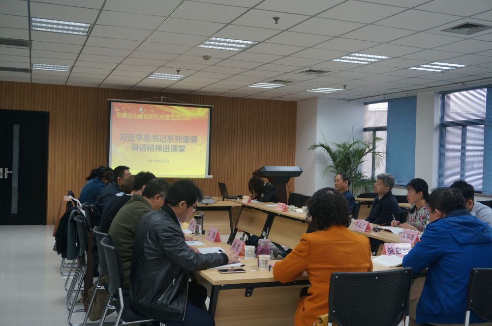 王宏波院长、分党委苏玉波书记等参加支部活动,并与思政所党支部的全体党员亲切交流互动。活动由思政所党支部书记杨华主持。学习交流活动围绕习近平总书记系列重要讲话精神进课堂的重要意义、主要内容、方法创新等问题进行了主题发言和讨论互动。