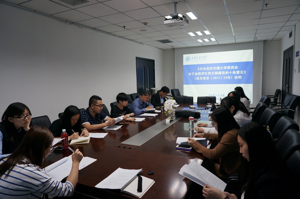 委员会关于加强学生党支部建设十条意见》文件,并进行了详细解读与深入探讨。各学生党支部支委成员踊跃发言,针对文件中理解不到位的地方大家展开了充分的讨论。各党支部书记深度探讨了支部在开展活动过程中遇到的问题和困难:如党支部会议出勤率问题、相关活动的经费支持等问题,吴河奇老师和耿嘉敏老师分别给予了详细解答。吴河奇老师针对规范党员发展程序、学院分党委对学生党支部活动的经费支持等相关工作对大家进行了说明。