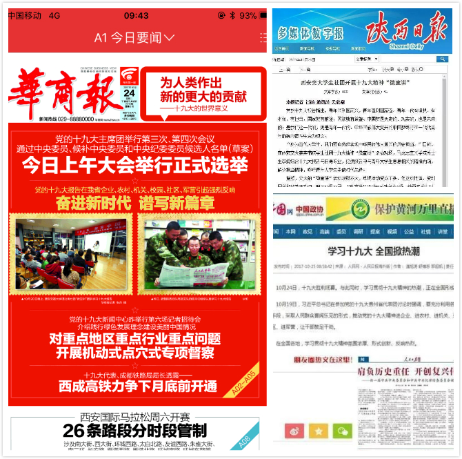 “微宣讲”活动在我校南洋书院拉开帷幕,时至今日,四位同学分别在南洋书院、崇实书院、仲英书院、研究生党支部以及我校西校区新干新秀班等地进行了7场以上的“微宣讲”活动,并从“弘扬担当精神”、“坚定理想信念,勇担青春使命”、“共产党宣言背后的故事”、“习近平七年知青岁月给我们的青春答案”等角度入手向广大学生党员、本科生班干部进行讲解与分享。活动不仅获得了广大师生的一致好评,同时也引发了中国教育报、人民网、中国共产党新闻网、光明网、中国政协网、凤凰网、陕西日报、网易新闻、陕西传媒网、陕西宣传网、华商报、西安日报、三秦都市报等多家社会主流媒体的相继报道和持续关注,中央电视台、陕西卫视等多家媒体也相继对我院师生进行采访。