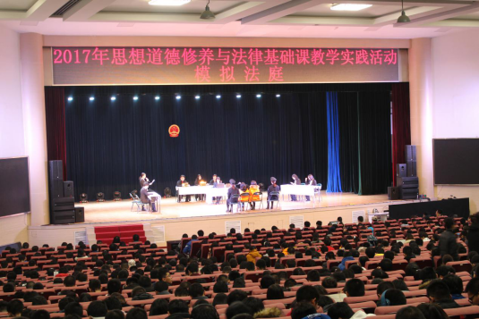 思想政治教育研究所组织的思想道德修养与法律基础课程教学实践活动——模拟法庭审判分别在西校区505体育馆和东校区宪梓堂成功举行,来自全校的一年级本科生及思想道德修养与法律基础课程的老师、助教参与了两次活动。