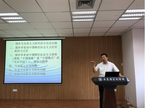 8月27日上午,马克思主义理论与交叉学科论坛第十九讲在主楼E505会议室举行。中国社会科学院哲学所副所长、《世界哲学》杂志主编冯颜利研究员以“国外马克思主义前沿问题解析”为题,进行了深入细致的解读和分析。燕连福院长主持了本次报告会,学院30余名师生参加本次讲座。
