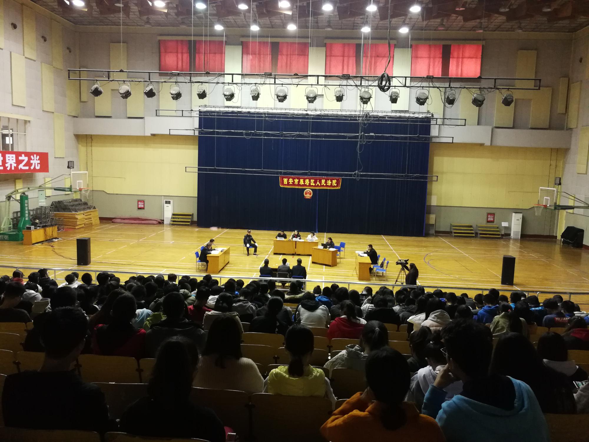 为进一步提升学生法律意识,增强学生学法、尊法、守法、用法的直观体验和敬畏意识。按照本学期“思想道德修养与法律基础”课程的教学计划,11月12日-13日下午,受我院思想政治教育研究所邀请,西安市雁塔区人民法院分别在西安交大西区505体育馆与东区宪梓堂公开庭审两起刑事案件。思想政治教育研究所所长杨华及任课教师与广大师生到场参与了庭审活动。