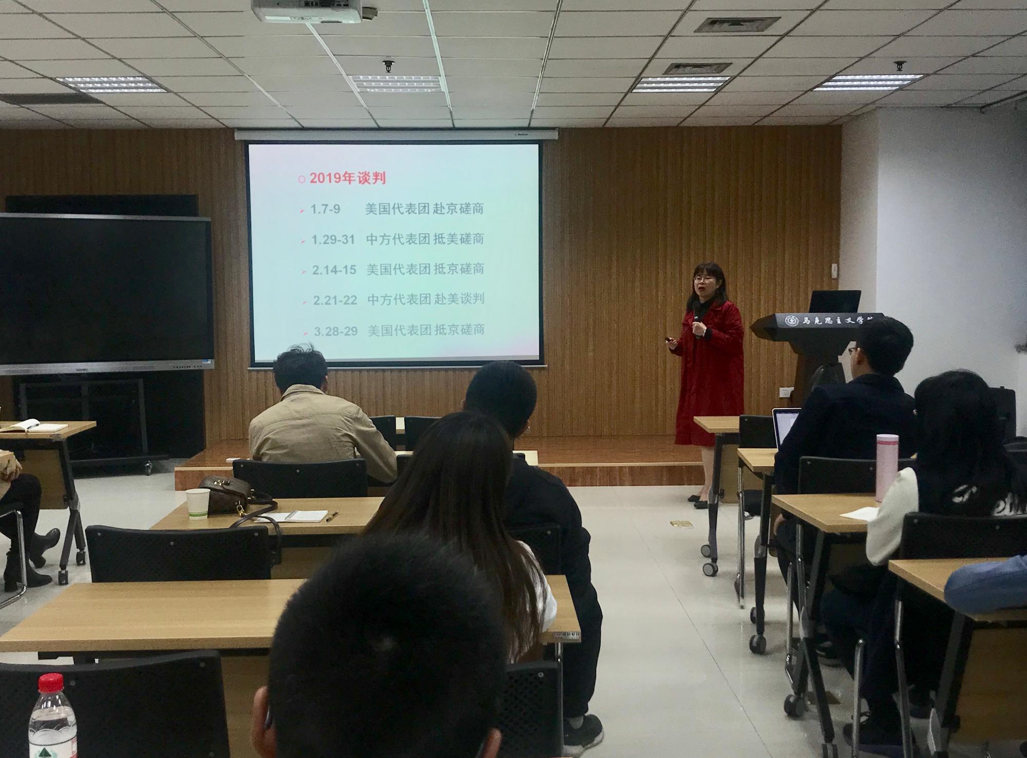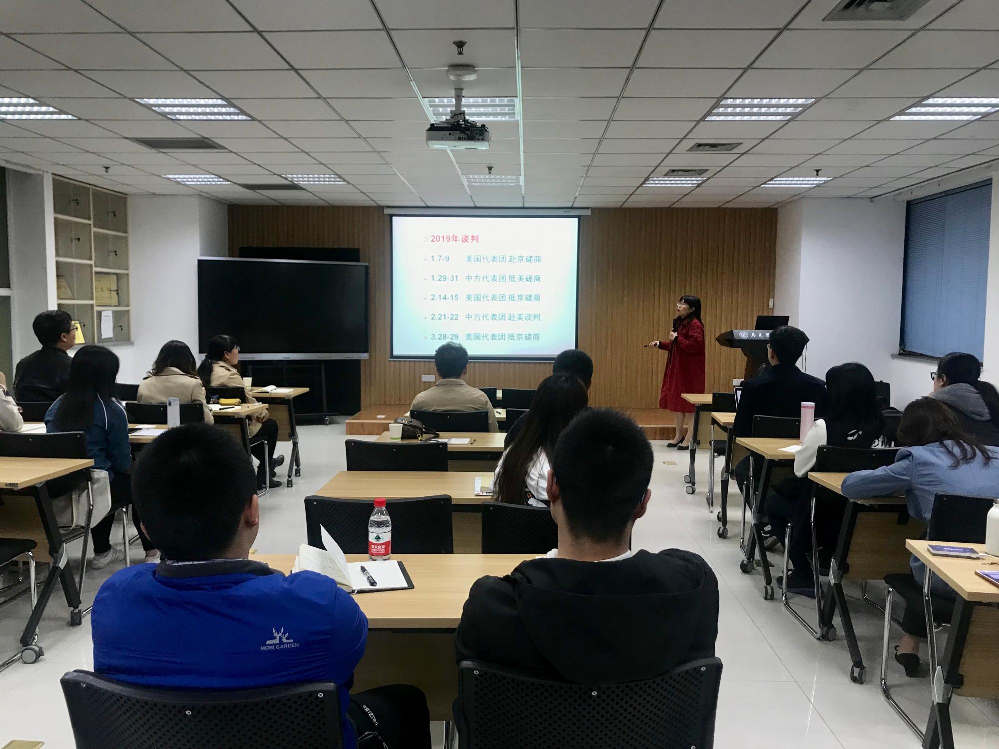 教授李秀珍应邀做题为“从贸易战看中美关系的变化”的公开讲座,院内外师生前来聆听,讲座由绅士漫画
