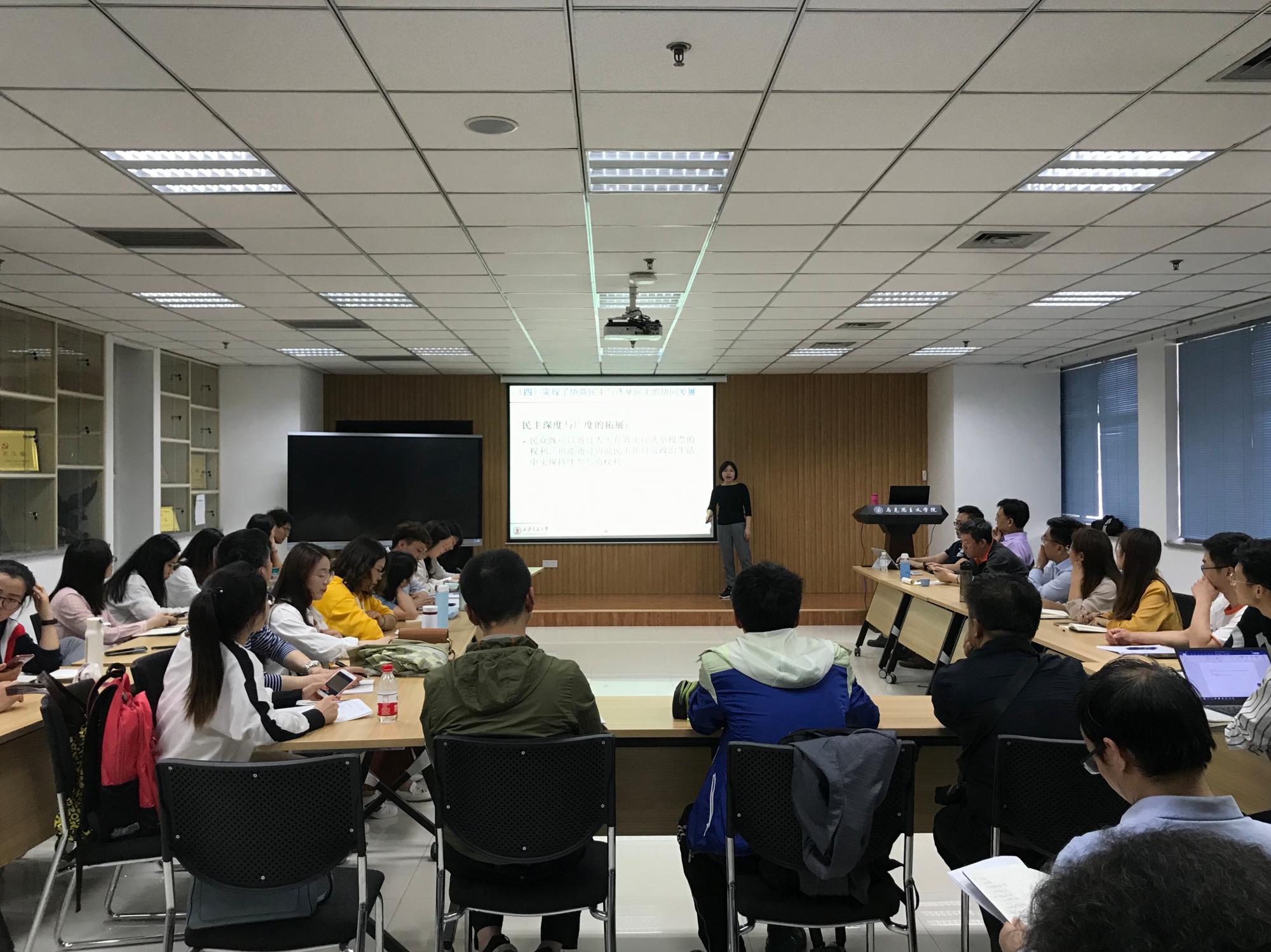 中马所青年教师王永香副教授作为第二期的主讲人,做了题为《中国协商民主建设70年的成就与经验》的学术报告。她回顾了七十年来中国协商民主建设的发展历程,将这一历程分划分为宏观确立、基层拓展、制度化与体系化三阶段。在此基础上,她提炼概括出中国协商民主所取得的历史成就及其独特优势,并总结了协商民主在中国成功实践的基本经验。王永香副教授基础扎实、功底深厚,她的研究立意高远、体系完整、层次分明,具有较高的创新性和前沿性。