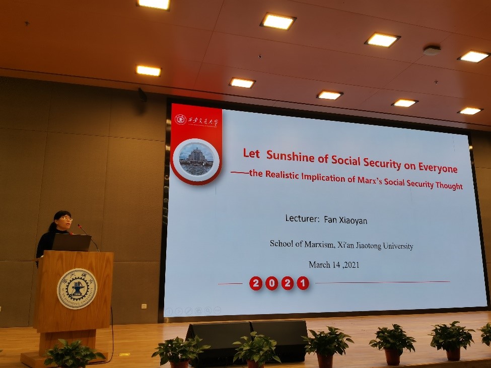 樊晓燕副教授作了题为“让社保阳光洒向千家万户——马克思社会保障思想的现实意蕴(Let Sunshine of Social Security on Everyone——Realistic Implication of Marx’s Social Security Thought)”的报告。她指出,马克思社会保障思想中蕴含着公平正义的基本理念、政府的社会保障责任以及社会保障发展遵循的基本规律,对中国社会保障制度建设具有重要的启示意义。