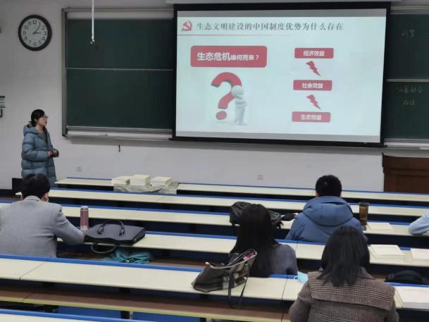 本次工作坊主题为青年教师教学汇报,刘源、邱雨、曹芳三位教师以毛泽东思想和中国特色社会主义理论体系课程中的《新时代的精准扶贫》《全面建成小康社会》《中国生态文明建设的制度优势》为主题,分别进行了20分钟的课程教学展示。