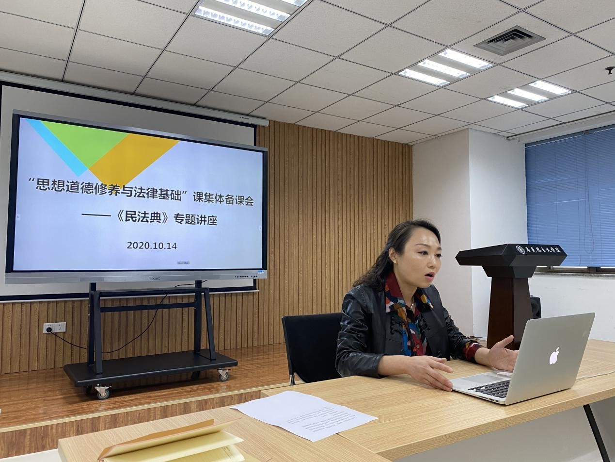 在提问交流环节中,薛华副教授就部分教师提出的如何发掘《民法典》的思政元素、如何讲清《民法典》的中国智慧、《民法典》融入思政课教学的关键点等问题作了耐心回答,为基础课教师探索《民法典》与“思想道德修养与法律基础”课的有机融合提供了思路。