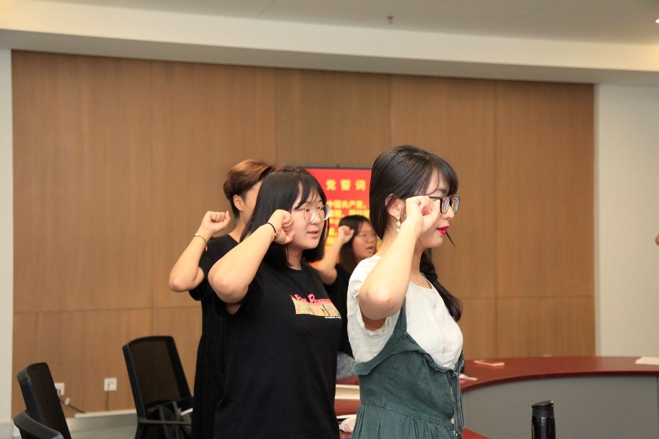 全体党员重温入党誓词,展望党“实现中华民族伟大复兴”的宏伟蓝图。