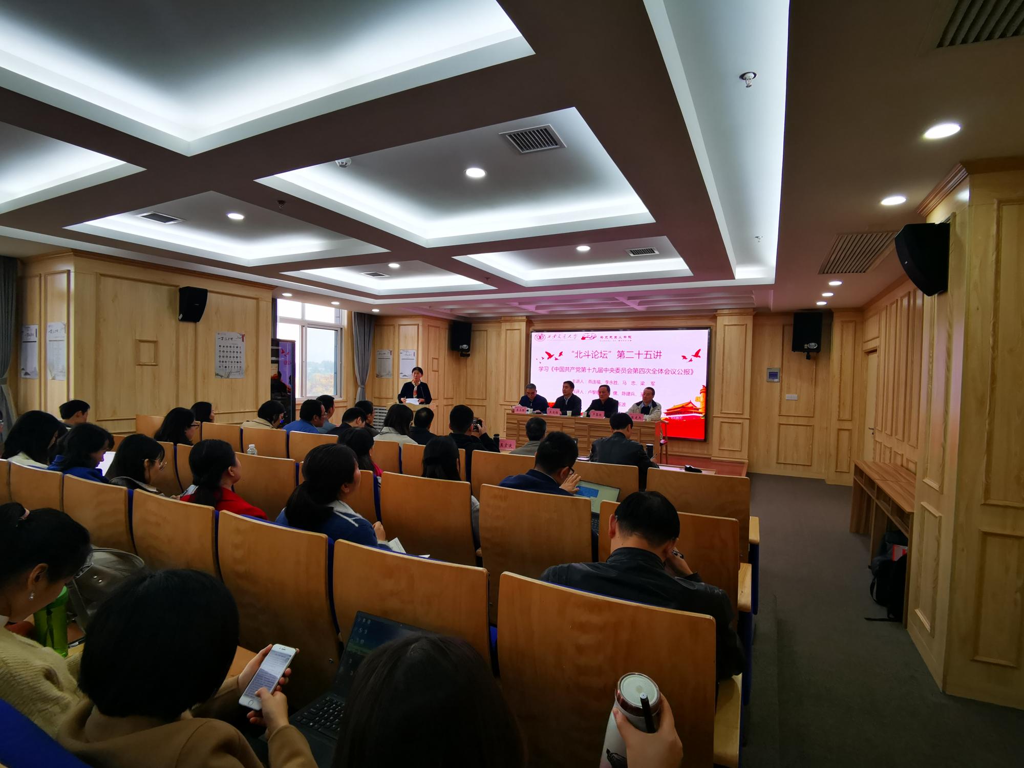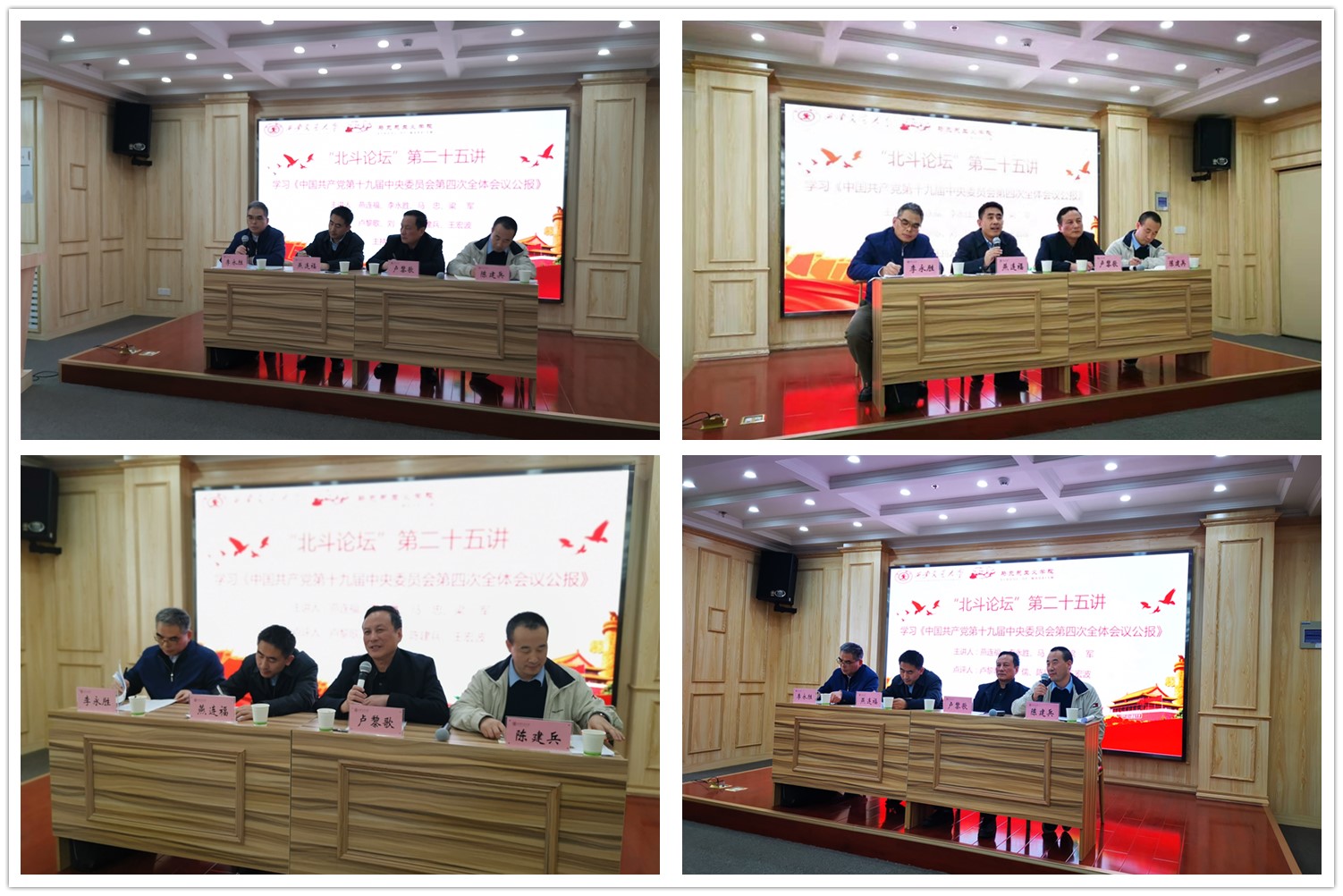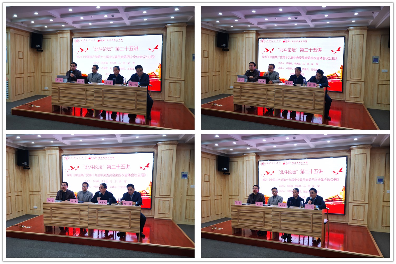 举办第二十五讲“北斗论坛”,学习《中国共产党第十九届中央委员会第四次全体会议公报》,由燕连福、马忠、李永胜、梁军四位教授作主题发言,王宏波、卢黎歌、刘儒、陈建兵四位教授作专家点评,深入学习党的十九届四中全会精神。绅士漫画