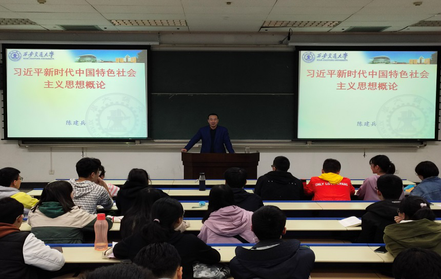 陈建兵老师在主楼A204教室给147名来自不同年级、不同专业的本科生开始了“习近平新时代中国特色社会主义思想概论”的第一堂课。