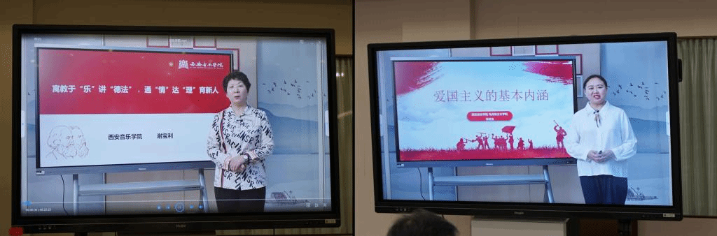 院长、教授谢宝利带来了生动有趣的“寓教于‘乐’讲‘德法’,通‘情’达‘理’育新人”展示,以鲜明的案例呈现了文艺活动融入《思想道德与法治》课程的主题,实现了动之以情,晓之以理的教学效果。西安音乐学院思政教研室主任、省思政课“大练兵”教学标兵冯洁玉对“爱国主义的基本内涵”进行了详细解读,以一首深情的《共和国之恋》歌曲引人入胜,通过歌曲对毅然决然回归祖国的科学家的赞颂,以激起同学们的爱国主义情怀,并以钱学森、邓稼先、张广厚的感人故事展示了爱国主义的具体内涵,寄予了对大学生以实际行动投身祖国奉献祖国的深切期望。两位老师的生动示范既体现政策性和学理性,又富有前沿性和生动性,为新版教材的绪论教学提供了有益借鉴。