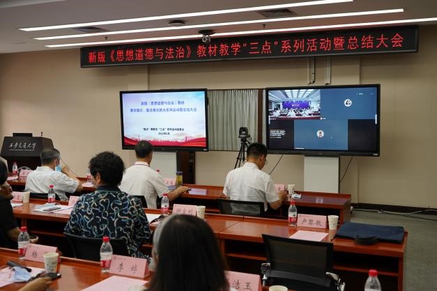 在思政课建设方面近年来取得的成绩表示充分肯定,对全国兄弟院校的支持表示衷心感谢,对本次“新版《思想道德与法治》教材教学‘三点’系列活动”表示高度的赞赏,并对如何发挥思政课在立德树人中的作用提出了新的期望。希望大家能够深入学习习近平总书记关于思政课建设的重要论述,思政课教师既要精通专业知识、做好“经师”,又要涵养德行、成为“人师”,成为“经师”与“人师”的统一者。