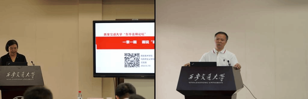 院长、教授沈宝莲以“一章一画 画说‘德法’”为题,分析了如何甄选思政课教学的美术资源,并针对从导论到每一个章节课程的教学重点,呈现了将美术作品与马克思主义经典作家的伟大事迹、马克思主义基本原理相结合,将美术作品融入思政课的具体展开。西安音乐学院党委书记、教授张立杰综合点评了三位教师的示范与分享。他表示,三位老师的授课展示了艺术作品融入思政课的探索、尝试、贯通,为我们提高思政课“抬头率”提供了启发和借鉴。张立杰教授还对如何落实“艺术思政”提出了新思路,倡导让艺术的元素巧妙的融入思政课教学之中、融入学生的情绪之中,实现思政课与艺术作品的互通互融,让思政课更加艺术化,让艺术作品真正为人民服务。