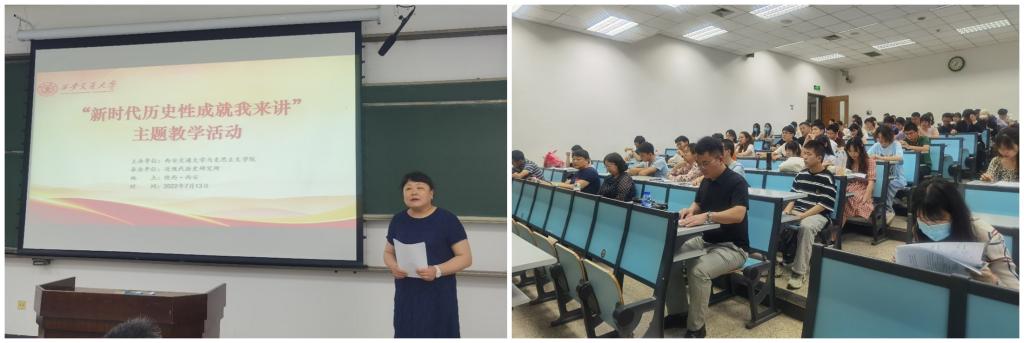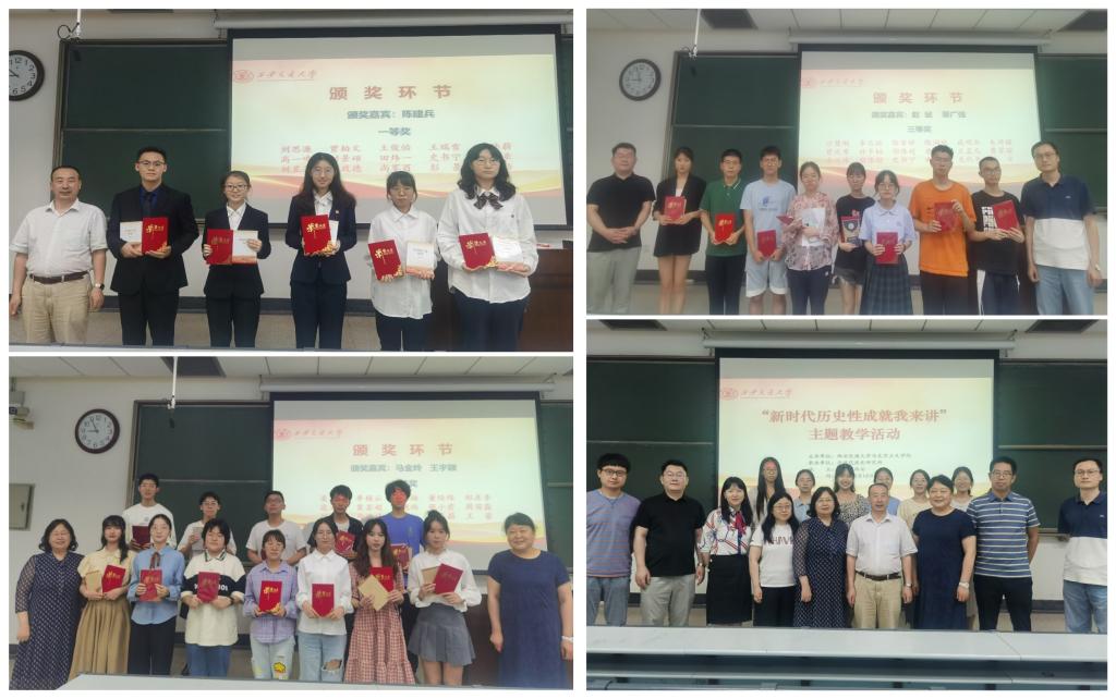 依托2021-2022第一学年开设的“习近平新时代中国特色社会主义思想概论”“马克思主义基本原理”“中国近现代史纲要”等3门本科生思政课开展“新时代历史性成就我来讲”主题教学活动。