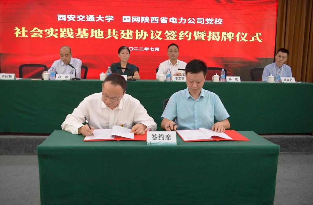 与国网陕西电力公司党校(以下简称“国网陕西党校”)社会实践基地共建协议签约暨揭牌仪式在国网陕西党校101会议室举行。国网陕西党校常务副校长、国网陕西管理培训中心主任李忠智,国网陕西党校副校长、国网陕西管理培训中心副主任朱国栋,西安交大绅士漫画