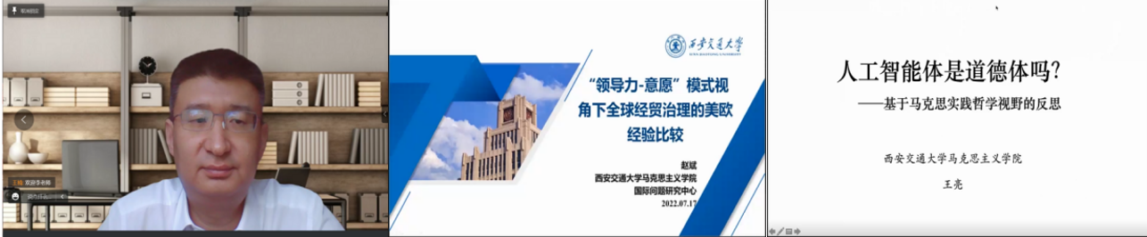 赵斌教授、王亮副教授分别作了题为“新时代党的历史使命”、“领导力-意愿”模式视角下全球经贸治理的美欧经验比较”、“人工智能体是道德体吗?——基于马克思实践哲学视野的反思”的报告。李教授围绕中华民族伟大复兴历史使命的历史方位、必由之路、具体部署和政治保证四个方面,精辟阐述了新的时代、中国道路、八大领域、党的建设的主要内容和重要意义。赵斌教授从自身的科研实际出发,围绕论文问题的提出、核心概念与理论假定、全球经贸治理的美欧经验比较分析、结语和启示等方面,向同学们传授了宝贵的经验。王亮副教授从西方传统道德理论下的人工智能道德体解决方案、马克思实践哲学视野下的人工智能道德体问题反思、人工智能道德问题是对马克思实践哲学精神的再现三个方面,介绍了自己的最近研究成果。三场报告深入浅出、内容丰富、视野开阔,令营员们深受启发、获益匪浅。