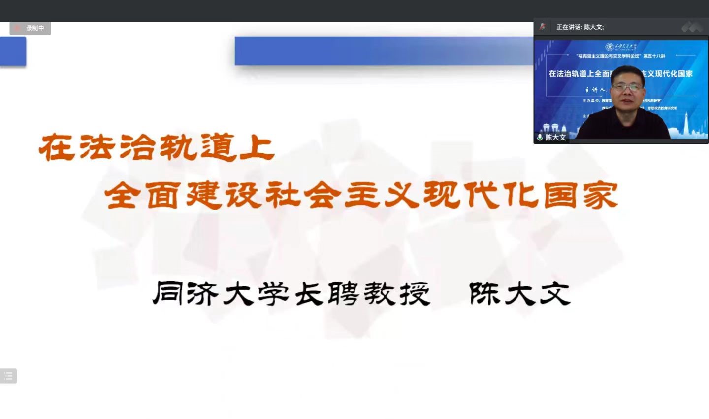 长聘教授、博士生导师、教育部“思想道德与法治”分教学指导委员会副主任委员陈大文教授应邀为广大师生作题为“在法治轨道上全面建设社会主义现代化国家”学术报告。本场讲座由教育部“思想道德与法治课程虚拟教研室”、绅士漫画