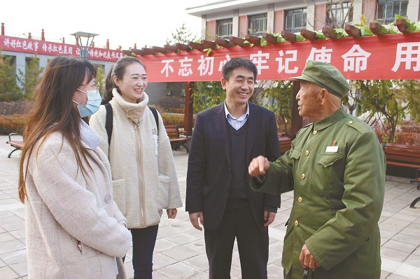 ■燕连福教授和他的研究生们在延安八一敬老院同老八路交流 陆航/摄
