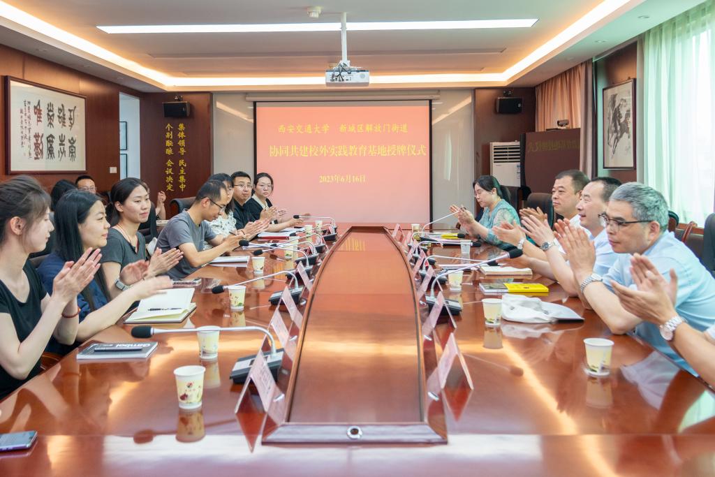 副院长陈建兵、新城区解放门街道党工委书记郭珮琦出席授牌仪式,解放门街道党工委副书记韩靖主持活动。马克思主义原理研究所所长李永胜,马原所联合党支部书记樊晓燕等师生10余人、解放门街道办工作人员及下属七个社区负责人参加活动。