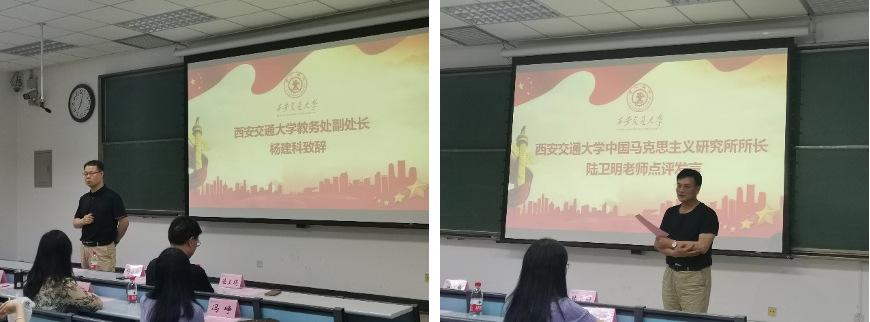 燕连福院长,学校教务处杨建科副处长,教育部高校思政课名师工作室负责人陆卫明,承担“习近平新时代中国特色社会主义思想概论”课教学的老师、助教,以及获奖学生代表参加此次活动。