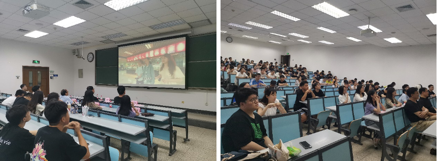 现场展播了《推动绿色发展,促进人与自然和谐共生》《促进和平与发展,构建人类命运共同》《盛开在中国大地上的石榴花》三部优秀微视频作品,鲜明的主题、新颖的构思、独特的设计、生动的剧情、以及强烈的家国情怀引发全场师生共鸣。来自马克思主义理论专业2021级的曾柏岳同学和课程助教教亢子月同学分别分享了获奖和组织感言。