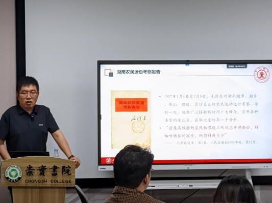张振副教授从习近平总书记针对调查研究工作相关论述引入:“调查研究是谋事之基、成事之道,没有调查就没有发言权,没有调查就没有决策权。”他指出,正确的决策离不开调查研究,正确的贯彻落实同样也离不开调查研究;从历史上看,调查研究作为中国共产党的一项工作方法,源自毛泽东对中国农村问题的系统性调查与解决之道。张振副教授通过《中国社会各阶级的分析》《湖南农民运动考察报告》的创作历程切入详实深入分析了毛泽东的调查研究方法,并结合习近平总书记关于调查研究工作的重要论述及《关于在全党大兴调查研究的工作方案》,分别对新时代调查研究工作的重要性、总体要求、具体方法进行阐释,在场同学纷纷为这种熟悉的学科氛围所感染。