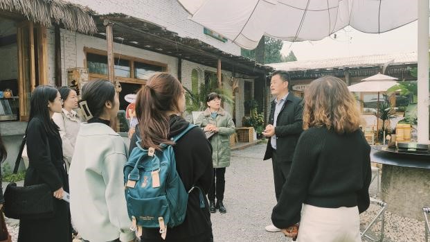 第二站团队来到的是位于八号公路末端的蔡家坡村,它是以文艺赋能乡村振兴的全国乡村旅游重点村。成员们考察了村里的美好生活服务中心、村民广场与村史馆,了解基础设施与文化建设现状。