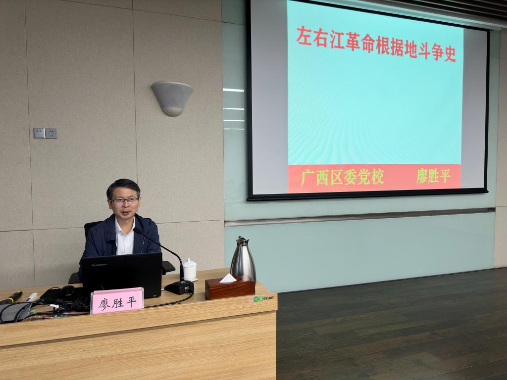 在专题教学环节,广西区委党校廖胜平教授以“左右江革命根据地斗争史”为题,对党领导的左右江革命根据地创建发展的艰辛历程以及“百折不挠、实事求是、依靠群众、团结奋斗”的百色起义精神进行了详细的讲授;广西民族大学陈元中教授以“邓小平的政治智慧和领导艺术”为题,从政治哲学、政治韬略、政治艺术三方面,解读了邓小平同志的政治智慧与领导艺术。