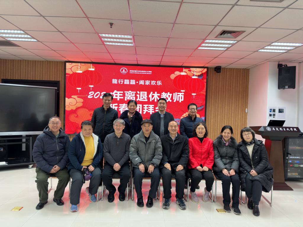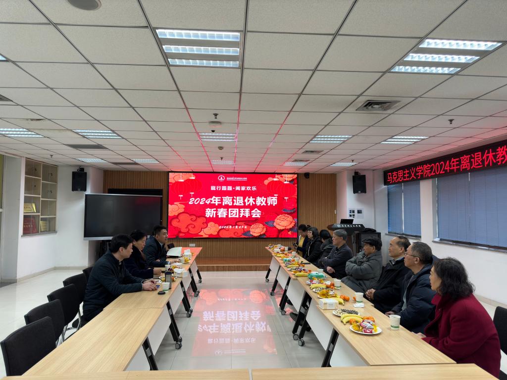 在主E-505会议室举办退休教师新春团拜会,学院班子集体与退休教职工亲切交流。团拜会由学院党委书记苏玉波主持。