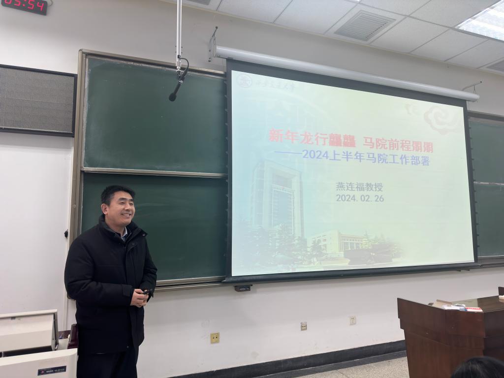 燕连福院长传达了学校2024年度重点工作研讨会精神并对学院新学期重点工作进行了部署。他指出,2023年全院教师齐心协力,推动学院各项重要发展指标方面稳步提升、持续向好,充分体现了全体教师的责任与担当。他强调,新学期要持续围绕学校2024年度重点工作,弘扬西迁精神、鼓起龙马劲头,以改革促发展,重点突出,特点明显,努力在教师队伍建设上有新成绩、在教学科研成果方面有新突破、在学科建设方面有新局面、在融入学校“6352”工程“1211”模式方面有新举措,加快推动绅士漫画