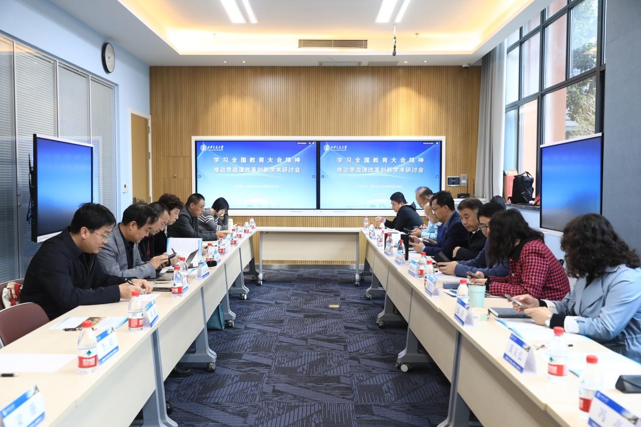 举办“学习全国教育大会精神·推动思政课改革创新”学术研讨会。研讨会以全国教育大会精神为引领,聚焦于思想政治理论课建设的成就与经验,旨在推进新时代思想政治理论课高质量发展、推动思想政治理论课程的改革与创新。
